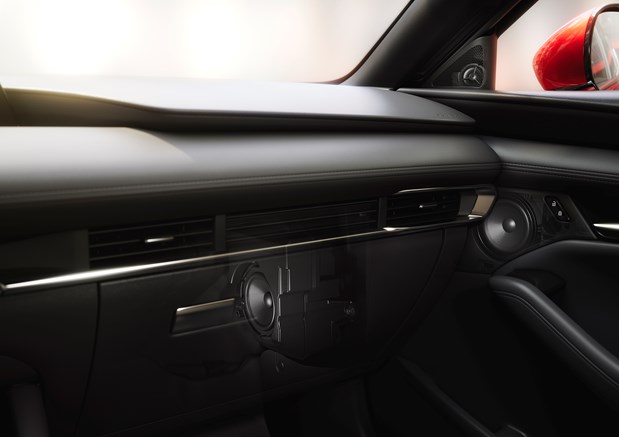 Hệ thống Loa cao cấp trên Mazda3 Sport được cẩn thận chọn lựa và điều chỉnh để phù hợp với đặc tính của khoang lái. Từ việc bố trí loa âm trầm trước mặt cho đến việc phân bổ vị trí các loa cho âm cao ở vị trí phù hợp, các kỹ sư đã nghiên cứu rất kỹ vấn đề tương tác giữa âm thanh và môi trường xung quanh nhằm đạt đên một trải nghiệm thực sự sống động cho người nghe, điều mà bạn chỉ có thể cảm nhận được khi ngồi trong cabin xe Mazda.